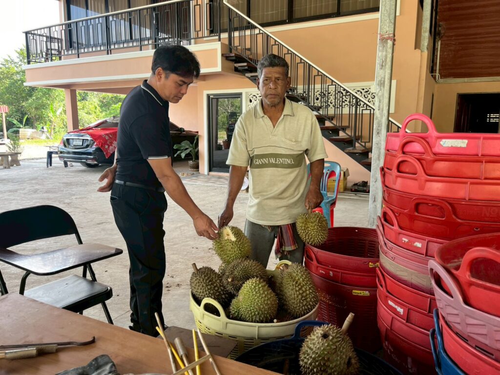 นายสุทธิพงศ์ ทองบุญ เกษตรอำเภอบันนังสตา พร้อมด้วย เจ้าหน้าที่สำนักงานเกษตรอำเภอบันนังสตา ลงพื้นที่เยี่ยมเยียนจุดรับซื้อทุเรียนในพื้นที่ โดยทางจุดรับซื้อได้มีการตรวจสอบคุณภาพของผลผลิตก่อน เพื่อป้องกันการซื้อขายทุเรียนอ่อน ณ หมู่ 4 ตำบลตาเนาะปูเต๊ะ อำเภอบันนังสตา จังหวัดยะลา