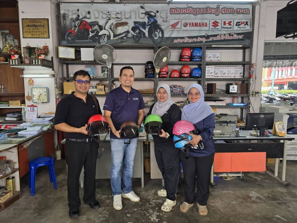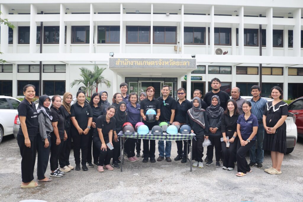 ทั้งนี้ สำนักงานเกษตรจังหวัดยะลา ได้รับการสนับสนุนหมวกนิรภัยจากบริษัท พินิตมอเตอร์ 2555 จำกัด และห้างหุ้นส่วนจำกัด แสงเจริญนาประดู่ สาขายะลา เพื่อใช้ในการส่งเสริมการสวมหมวกนิรภัยของบุคลากรในหน่วยงาน อันเป็นแบบอย่างที่ดีแก่ประชาชนในพื้นที่ต่อไป