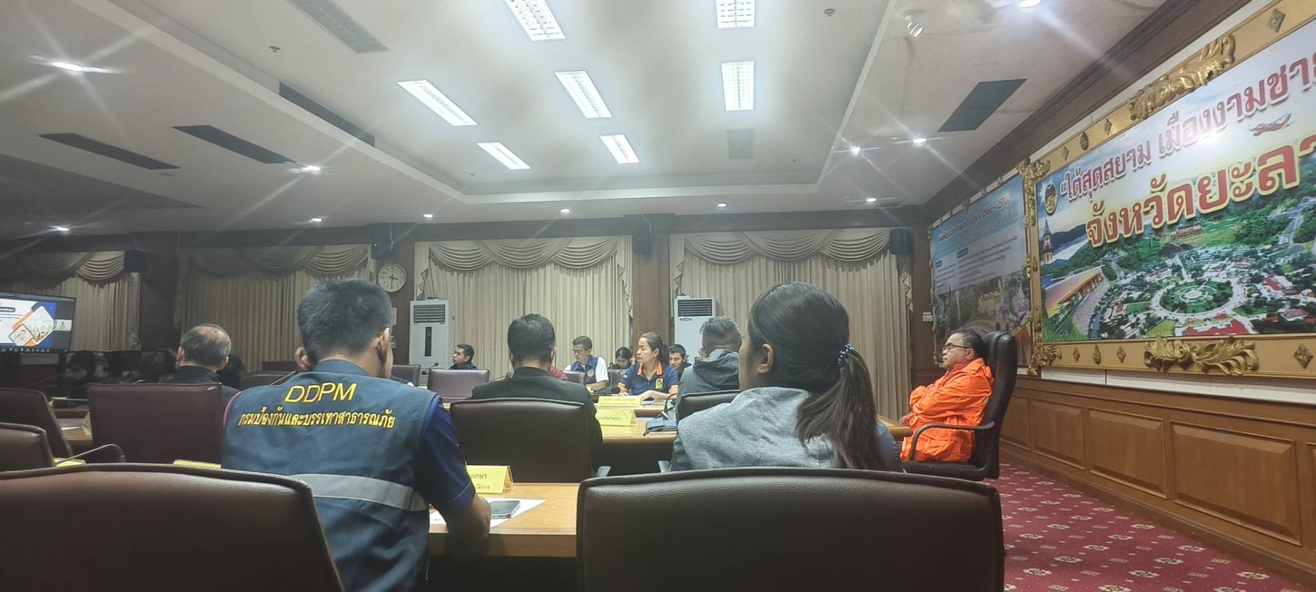 ในการนี้ นายก้องสกุล จันทราช รองผู้ว่าราชการจังหวัดยะลา หัวหน้าส่วนราชการ และหน่วยงานที่เกี่ยวข้อง เข้าร่วมประชุมดังกล่าว ณ ห้องประชุมพิกุล อาคาร 3 ชั้น 3 ศาลากลางจังหวัดยะลา เพื่อรับข้อสั่งการและเตรียมการขับเคลื่อนการบริหารจัดการสถานการณ์ภัยพิบัติในพื้นที่จังหวัดยะลาต่อไป