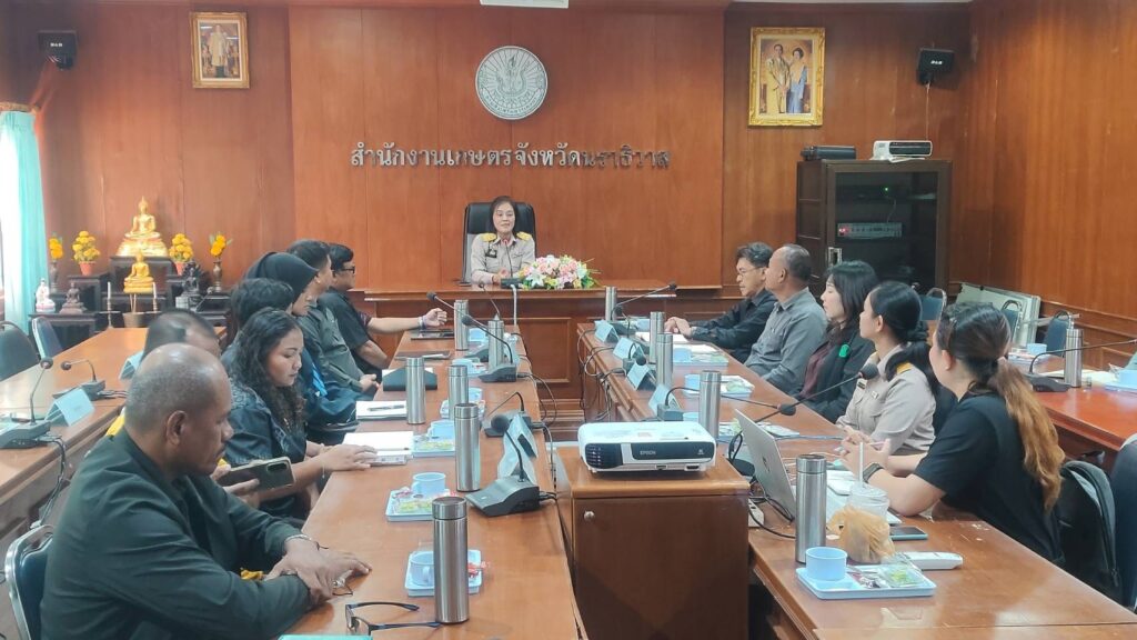 วันที่ 26 มกราคม 2569 นางวีระ สมศิริ เกษตรจังหวัดยะลา มอบหมายให้นางสาวทิพย์วาสนา หลวงชัยนักวิชาการส่งเสริมการเกษตรชำนาญการ และว่าที่ ร.ต.บูคอรี เจะและ เจ้าพนักงานการเกษตร กลุ่มส่งเสริม และพัฒนาการผลิต สำนักงานเกษตรจังหวัดยะลา เข้าร่วมการจัดทำหลักสูตรการพัฒนาอาชีพการเกษตรที่เหมาะสม ในพื้นที่ ตามโครงการศูนย์ศึกษาการพัฒนาอันเนื่องมาจากพระราชดำริ ณ ห้องประชุมชัญญานุวัตร สำงานเกษตรจังหวัดนรธิวาส ตำบลำภู อำเภอเมืองนราธิวาส จังหวัดนราธิวาส เพื่อพิจารณากลั่นกรอง เนื้อหาหลักสูตรการปรับตัวของเกษตรกรด้านการผลิตพืชต่อการเปลี่ยนแปลงสภาพภูมิอากาศ