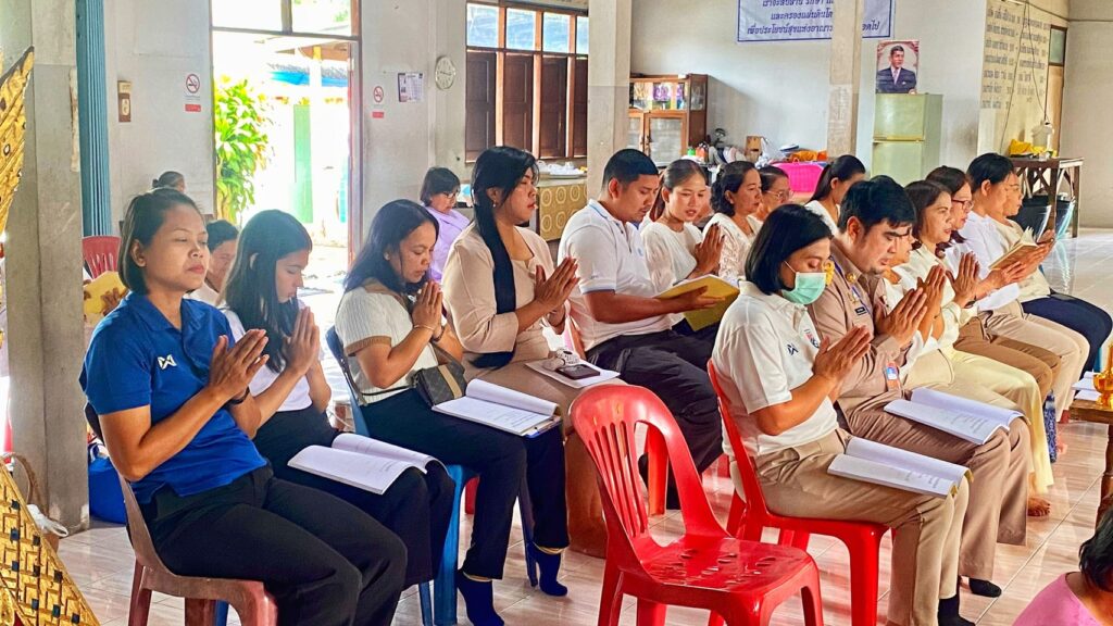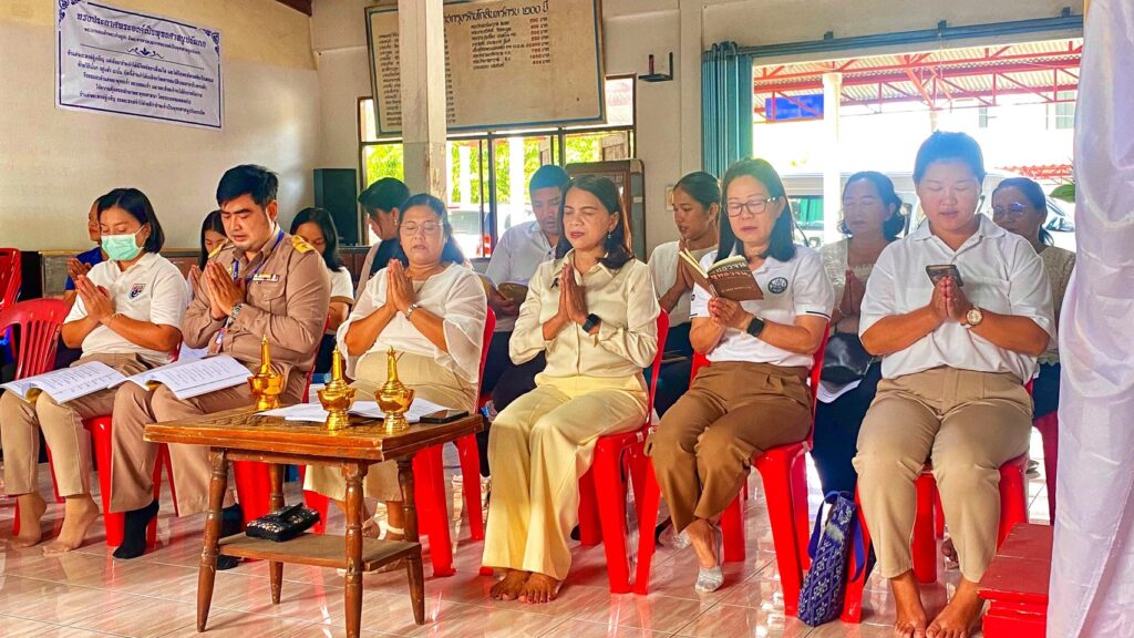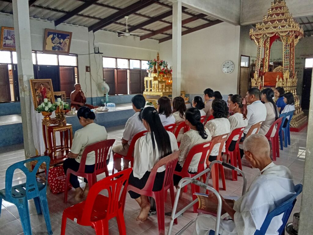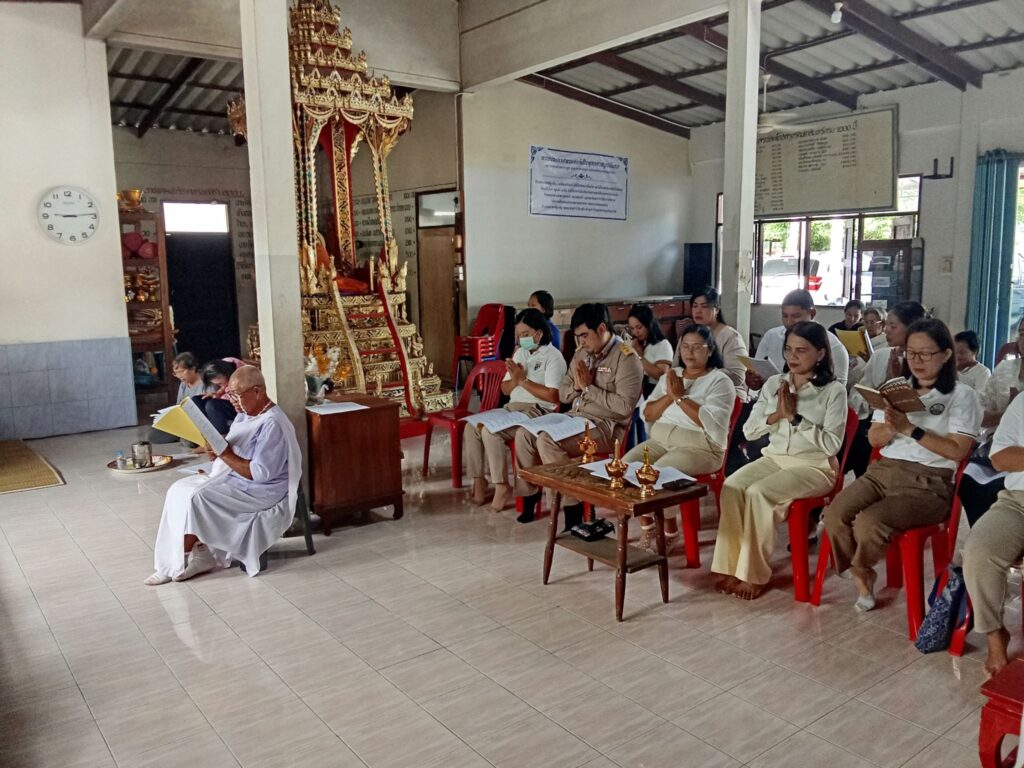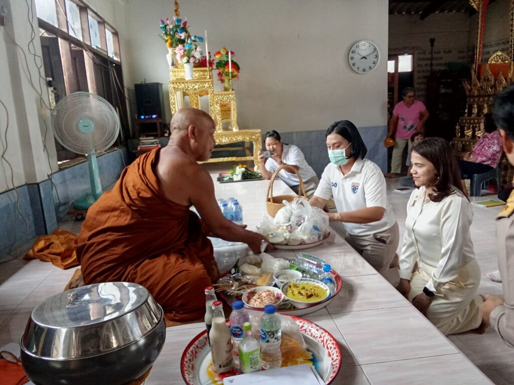ในการนี้ ผู้เข้าร่วมกิจกรรมได้นำปิ่นโตและปัจจัยไปถวายพระภิกษุ – สามเณร เพื่อร่วมทำบุญและแสดงออกถึงการน้อมนำหลักคุณธรรม จริยธรรม และหลักธรรมทางพระพุทธศาสนามาปรับใช้ในการดำเนินชีวิตและการปฏิบัติราชการ