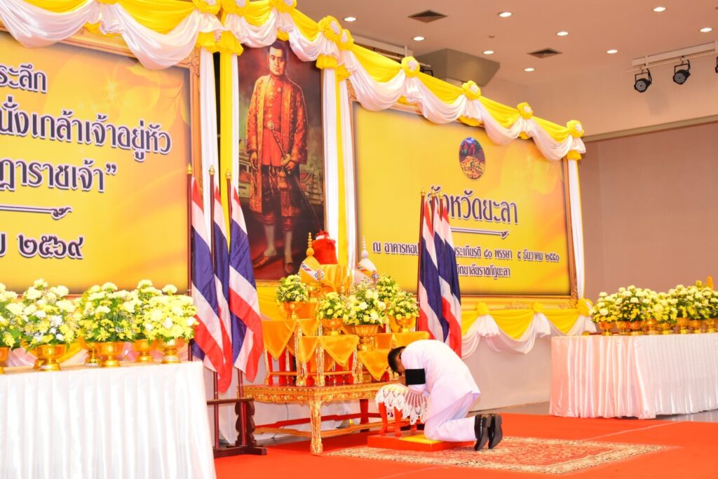 วันที่ 31 มีนาคม 2569 เวลา 07.00 น. นางวีระ สมศิริ เกษตรจังหวัดยะลา มอบหมายให้ นางสาวณัฐินี คงสุข หัวหน้าฝ่ายบริหารทั่วไป พร้อมด้วยเจ้าหน้าที่สำนักงานเกษตรจังหวัดยะลา เข้าร่วมพิธีวันที่ระลึก พระบาทสมเด็จพระนั่งเกล้าเจ้าอยู่หัว พระมหาเจษฎาราชเจ้า ประจำปี 2569 โดยมี นายอำนาจ ชูทอง รองผู้ว่าราชการจังหวัดยะลา เป็นประธานในพิธี พร้อมด้วยหัวหน้าส่วนราชการ ข้าราชการ ตำรวจ ทหาร และประชาชนเข้าร่วมอย่างพร้อมเพรียง ณ หอประชุมเฉลิมพระเกียรติ 80 พรรษา 5 ธันวาคม 2550 มหาวิทยาลัยราชภัฏยะลา อำเภอเมืองยะลา จังหวัดยะลา