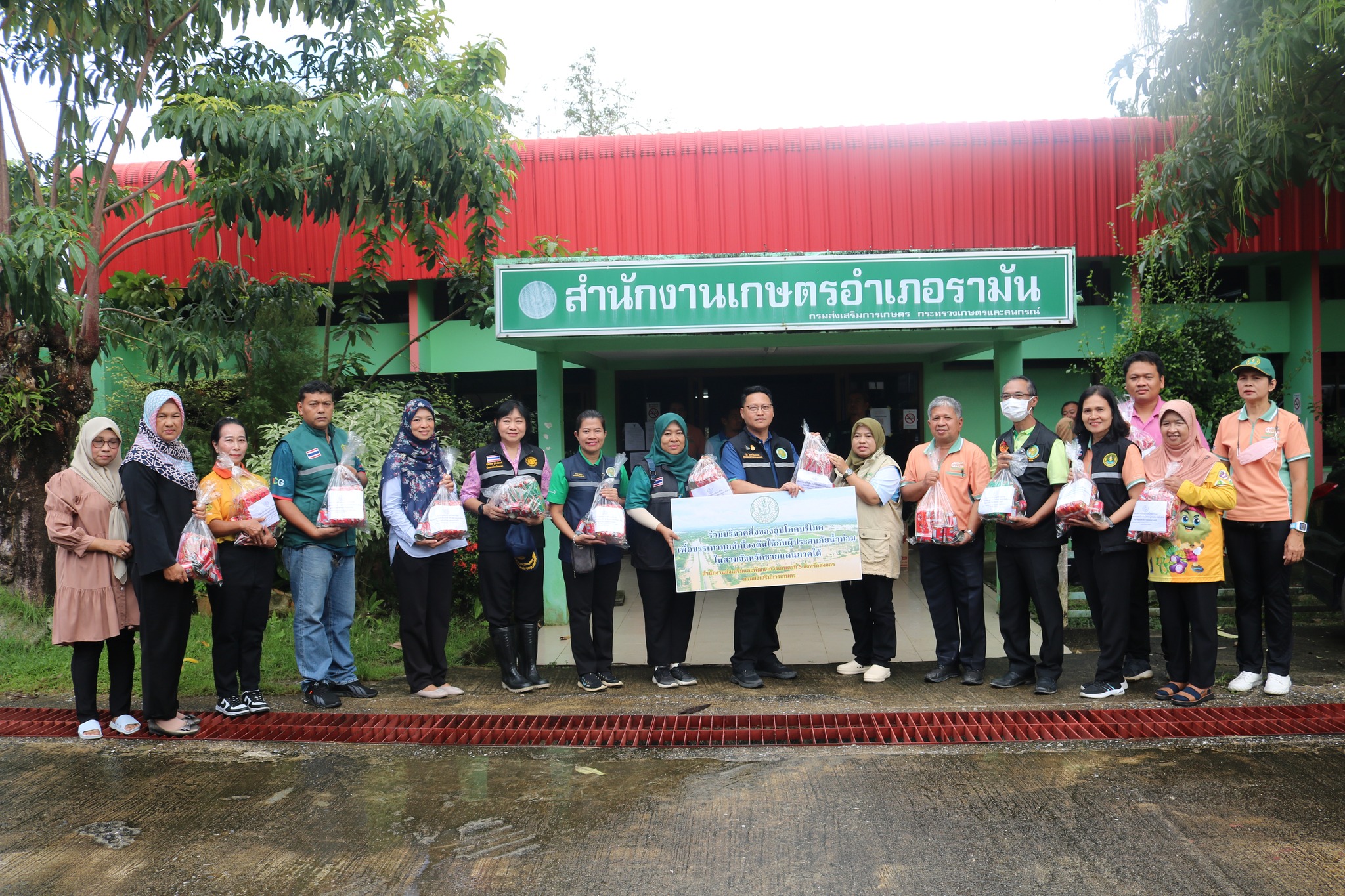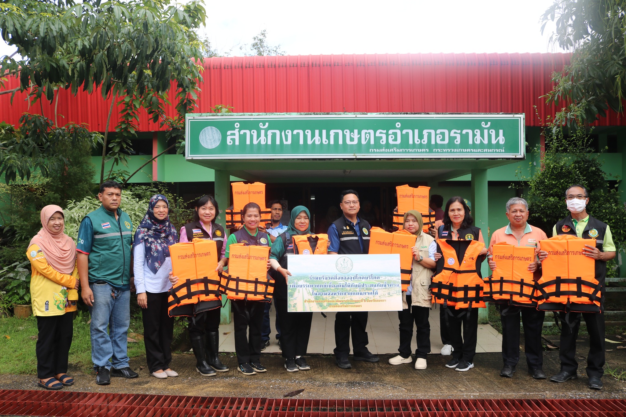 วันที่ 28 ธันวาคม 2566 นายกัสมัน ยะมาแล เกษตรจังหวัดยะลา พร้อมด้วย นางทัศณี ศุภกุล ผู้อำนวยการกลุ่มยุทธศาสตร์และสารสนเทศ/ นางศิริมา บางัสสาเร๊ะ ผู้อำนวยการกลุ่มพัฒนาบุคลากร สำนักงานส่งเสริมและพัฒนาการเกษตรที่ 5 จังหวัดสงขลา/ หัวหน้าส่วนราชการ สังกัดกระทรวงเกษตรและสหกรณ์ และเจ้าหน้าที่ในสังกัด ร่วมให้การต้อนรับ นายธิติ โลหะปิยะพรรณ ผู้ช่วยปลัดกระทรวงเกษตรและสหกรณ์ พร้อมคณะฯ ในโอกาสลงพื้นที่ตรวจเยี่ยมผู้ประสบอุทกภัยในพื้นที่จังหวัดยะลา ในการนี้ ได้ร่วมกันจัดเตรียมอาหารและน้ำดื่ม สำหรับช่วยเหลือเกษตรกรและประชาชนผู้ประสบอุทกภัย ณ จุดจัดตั้ง “โรงครัวกระทรวงเกษตรและสหกรณ์ ร่วมกับมูลนิธิธรรมนัส พรหมเผ่า” ทั้งนี้ได้ทำการส่งมอบถุงยังชีพและเสื้อชูชีพให้กับเจ้าหน้าที่ในพื้นที่ ณ สำนักงานเกษตรจังหวัดยะลา อำเภอเมืองยะลา และสำนักงานเกษตรอำเภอรามัน อำเภอรามัน จังหวัดยะลา