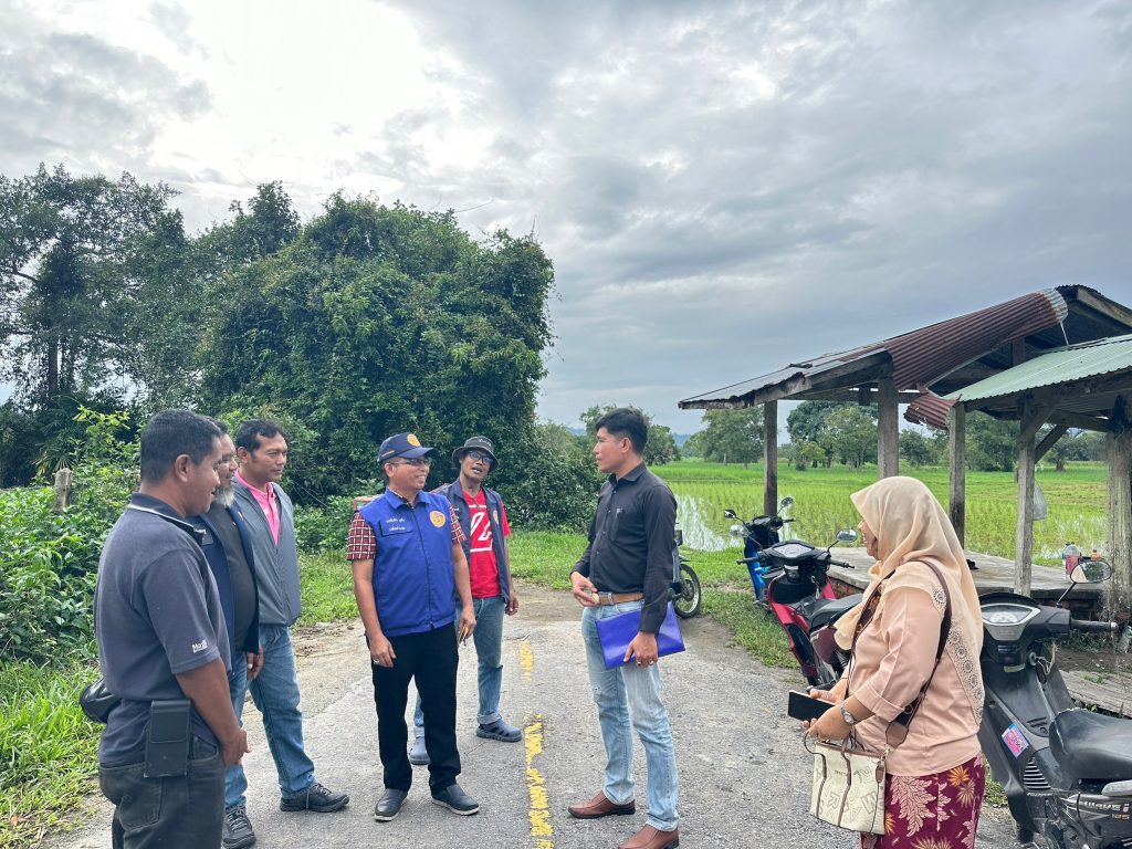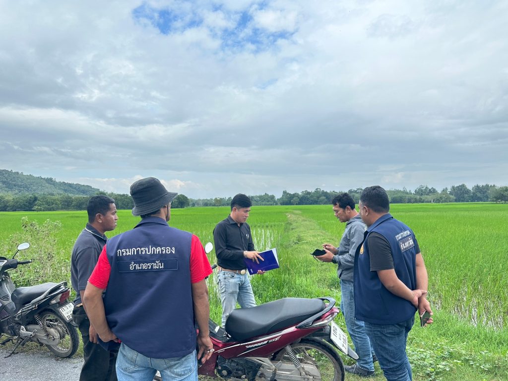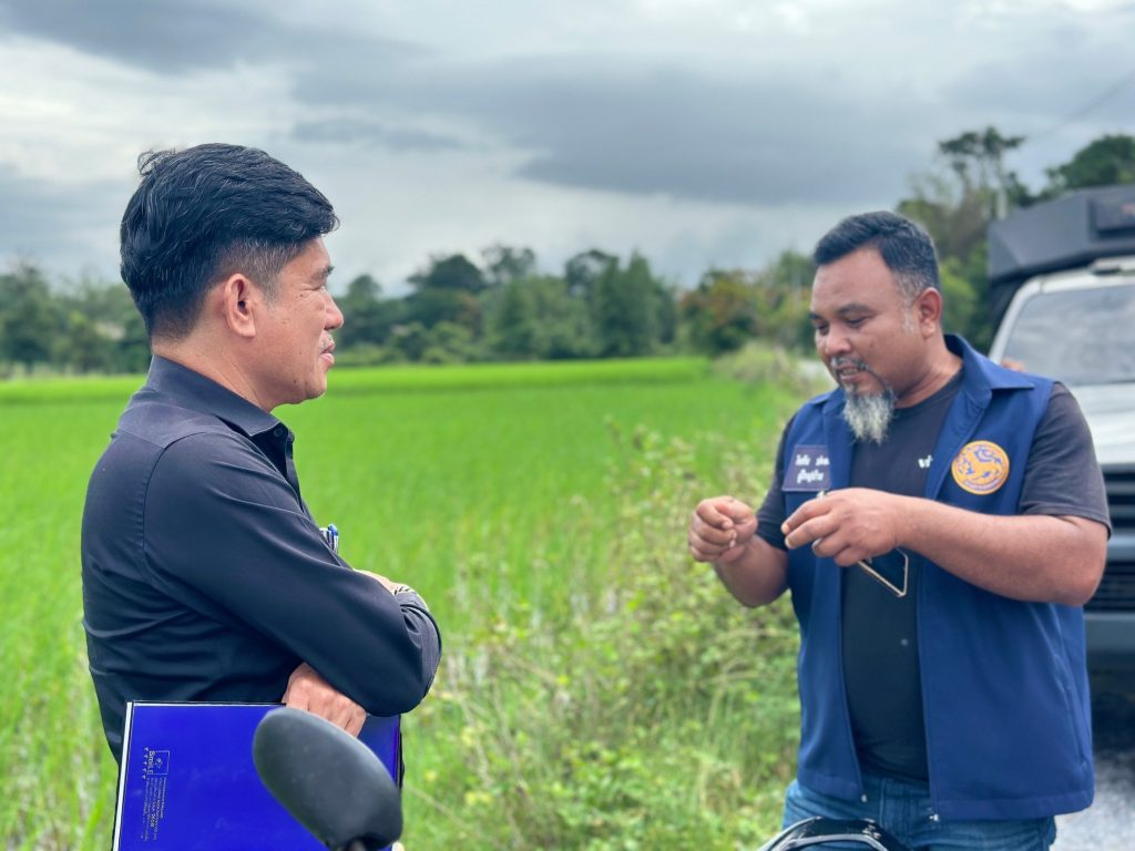 วันที่ 17 ธันวาคม 2567 นายกัสมัน ยะมาแล เกษตรจังหวัดยะลา มอบหมายให้นายอนุชา จูวัตร์ หัวหน้ากลุ่มยุทธศาสตร์และสารสนเทศ พร้อมด้วยเจ้าหน้าที่ในสังกัด ร่วมกับเจ้าหน้าที่สำนักงานเกษตรอำเภอรามัน ลงพื้นที่ติดตามการตรวจสอบแปลงเกษตรกรในการขอรับขึ้นทะเบียนเกษตรกรผู้ปลูกข้าวนาปี ปีการผลิต 2567/68 ณ หมู่ที่ 2 และหมู่ที่ 7 ตำบลเนินงาม อำเภอรามัน จังหวัดยะลา โดยมีนายกองค์การบริหารส่วนตำบลเนินงาม ปลัดอำเภอประจำตำบล กำนัน ผู้ใหญ่บ้าน และอาสาสมัครเกษตรหมู่บ้าน ร่วมลงพื้นที่และอำนวยความสะดวกในการตรวจสอบแปลง ซึ่งพื้นที่ดังกล่าวเกษตรกรได้แจ้งขึ้นทะเบียนเกษตรกรออนไลน์ ผ่าน e-Form ทะเบียนเกษตรกร (https://efarmer.doae.go.th)