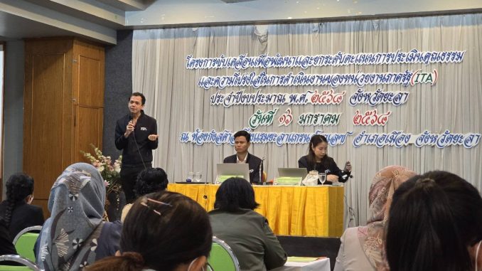 วันที่ 16 มกราคม 2568 นายกัสมัน ยะมาแล เกษตรจังหวัดยะลา มอบหมายให้ นายพีรบูรณ์ พรหมจันทร์ นักวิชาการส่งเสริมการเกษตรชำนาญการ กลุ่มยุทธศาสตร์และสารสนเทศ และนางพรรณี จันทร์สืบ เจ้าพนักงานธุรการชำนาญงาน ฝ่ายบริหารทั่วไป เข้าร่วมการฝึกอบรมโครงการขับเคลื่อนเพื่อพัฒนาและยกระดับคะแนนการประเมินคุณธรรมและความโปร่งใสในการดำเนินงานของหน่วยงานภาครัฐ (ITA) ประจำปีงบประมาณ พ.ศ. 2568 จังหวัดยะลา จัดโดยศูนย์ปฏิบัติการต่อต้านการทุจริตจังหวัดยะลา ณ ห้องประชุมกังสดาล โรงแรมยะลาแกรนด์พาเลซ อำเภอเมืองยะลา จังหวัดยะลา โดยมีนายก้องสกุล จันทราช รองผู้ว่าราชการจังหวัดยะลา เป็นประธานเปิดการฝึกอบรม ทั้งนี้ เพื่อพัฒนาความรู้ ความเข้าใจเกี่ยวกับแนวทางและหลักเกณฑ์การประเมินและยกระดับคะแนนการประเมินคุณธรรมและความโปร่งใสในการดำเนินงานของหน่วยงานให้สูงขึ้น ตลอดจนส่งเสริมให้มีการปลูกจิตสำนึกและมีความตระหนักถึงความสำคัญของการป้องกันการทุจริต คุณธรรม จริยธรรม และความโปร่งใสตามหลักธรรมาภิบาลให้กับเจ้าหน้าที่ของรัฐและเพิ่มประสิทธิภาพในการปฏิบัติงาน