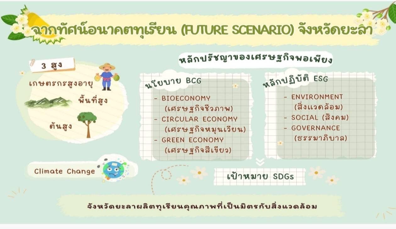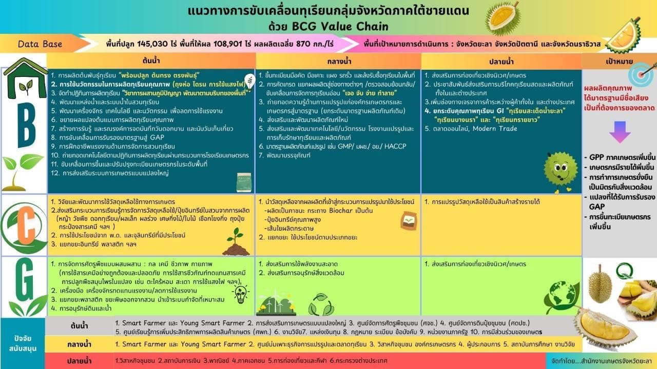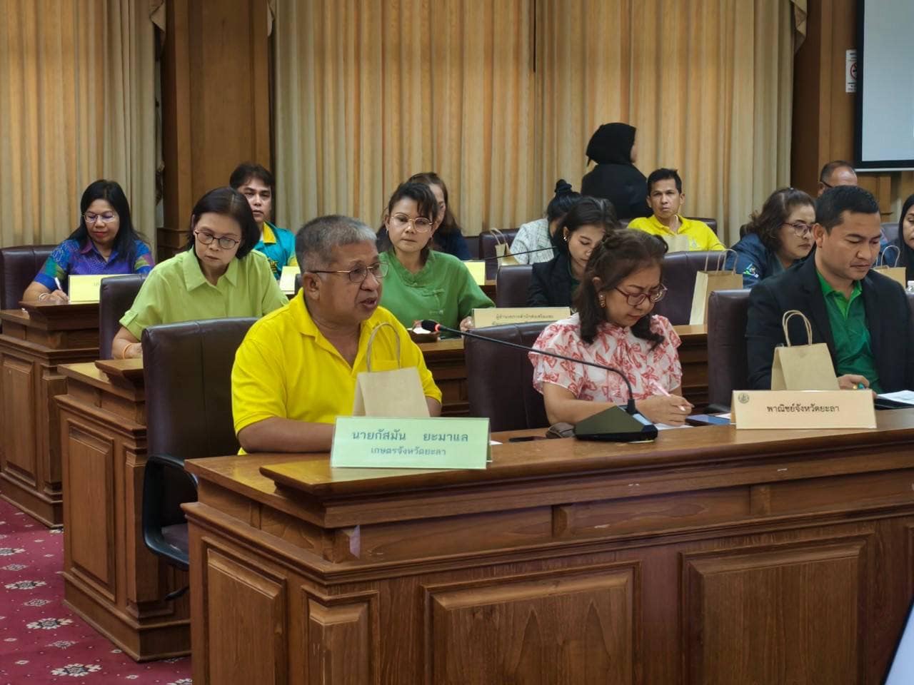 วันที่ 22 มกราคม 2568 เวลา 13.30 น. นายกัสมัน ยะมาแล เกษตรจังหวัดยะลา จัดประชุมคณะกรรมการและชุดปฏิบัติการเฉพาะกิจขับเคลื่อนวาระ “ยะลาเมืองทุเรียน” ด้วย BCG Model ครั้งที่ 1/2568 โดยมีนายอำพล พงศ์สุวรรณ ผู้ว่าราชการจังหวัดยะลา เป็นประธานการประชุม มีการสรุป ผลการดำเนินงาน โดยเฉพาะเรื่องการบริหารจัดการผลิตทุเรียนคุณภาพ การแก้ปัญหาทุเรียนด้อยคุณภาพ (ทุเรียนอ่อน) การส่งเสริมแก้ไขปัญหาหนอนเจาะเมล็ดทุเรียน การจัดการขยะเปลือกทุเรียน และร่วมพิจารณาแนวทางขับเคลื่อนวาระ “ยะลาเมืองทุเรียน” ด้วย BCG Model ปี 2568 สู่แนวทางการขับเคลื่อนทุเรียนกลุ่มจังหวัดภาคใต้ชายแดน ด้วย BCG Value Chain และฉากทัศน์อนาคตทุเรียน (Future Scenario) จังหวัดยะลา มีวัตถุประสงค์เพื่อส่งเสริมและพัฒนาคุณภาพทุเรียนของจังหวัดยะลา ให้เป็นที่ยอมรับของผู้บริโภคและตลาดทุกระดับ ตลอดถึงผู้ประกอบการค้าปลีกค้าส่งในประเทศและส่งออกต่างประเทศ อยู่ในระบบปฏิบัติตามมาตรการของรัฐ สามารถตรวจสอบได้ เพื่อเสริมสร้างภาพลักษณ์ของผลไม้คุณภาพดีจังหวัดยะลาให้เป็นที่รู้จัก และสร้างความเชื่อมั่นให้ผู้บริโภคในการซื้อสินค้าเกษตรที่มีคุณภาพปลอดภัย โดยมีหัวหน้าส่วนราชการ เจ้าหน้าที่เกี่ยวข้อง เข้าร่วมประชุม รวมทั้งสิ้น 85 ราย ณ ห้องประชุมศรียะลา อาคาร 3 ชั้น 3 ศาลากลางจังหวัดยะลา