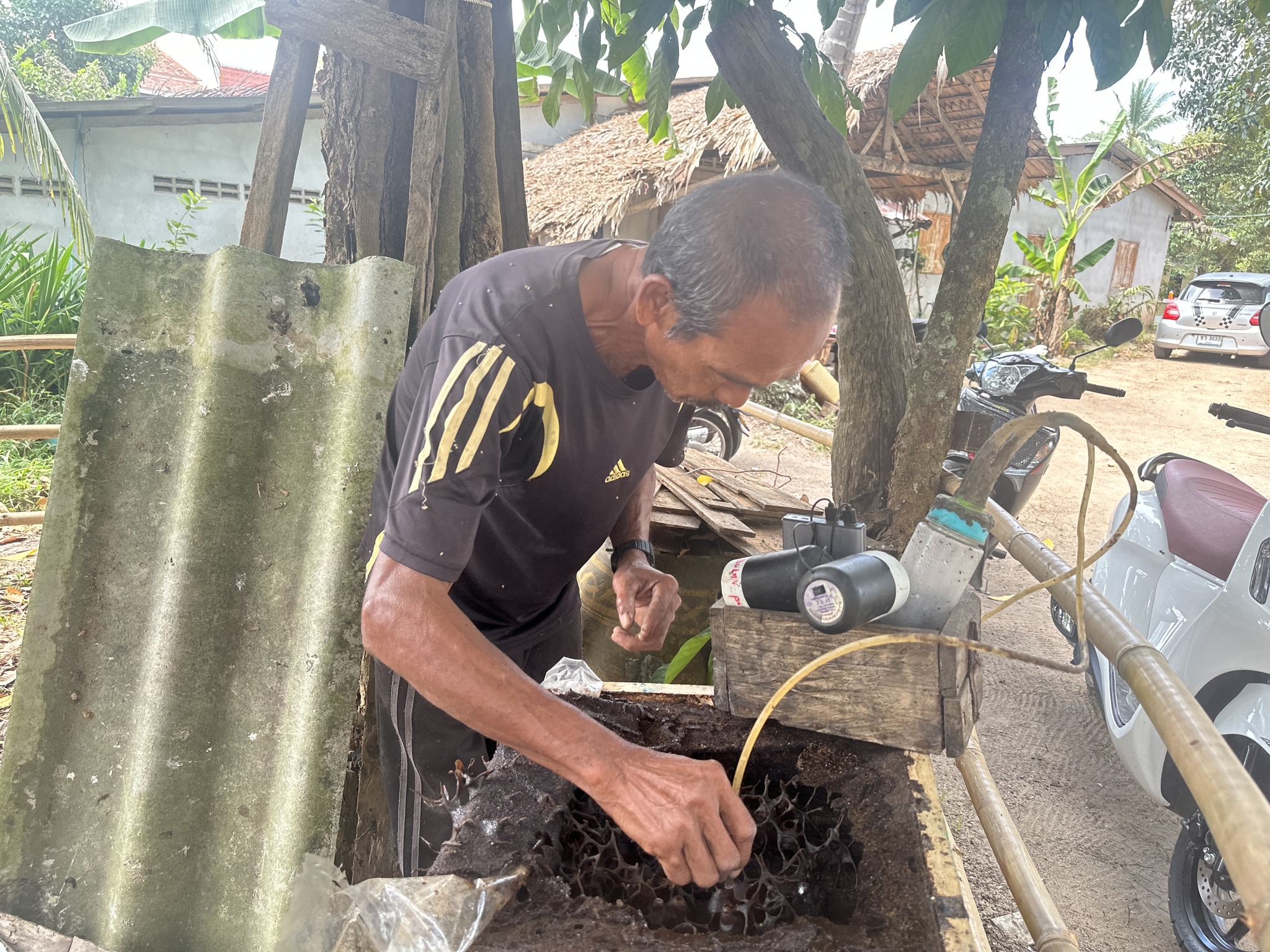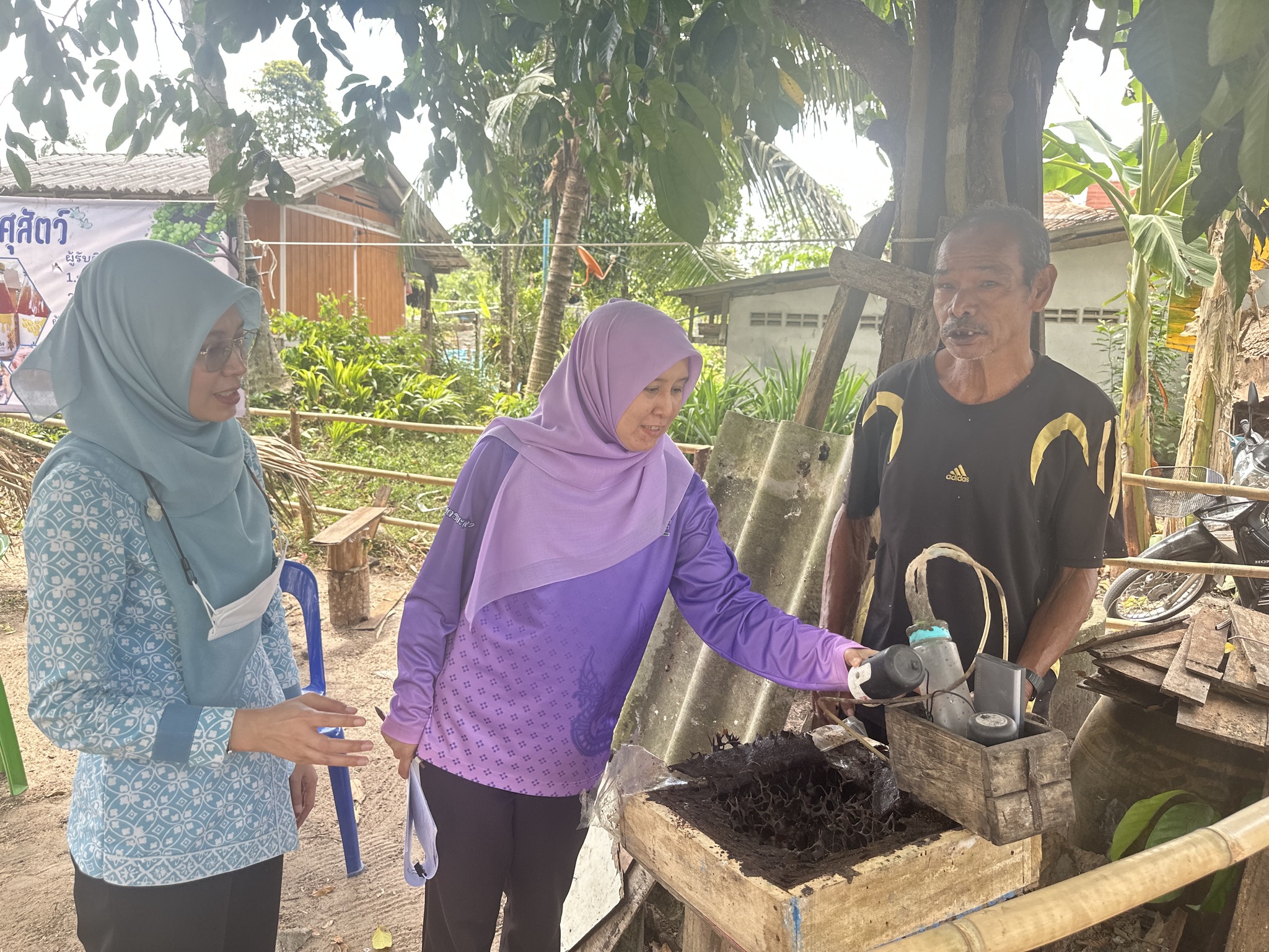 จากนั้นลงพื้นที่ติดตามการจัดเก็บข้อมูลภูมิปัญญาท้องถิ่นและนวัตกรรมด้านการเกษตร ณ หมู่ที่ 7 ตำบลยะหา อำเภอยะหา จังหวัดยะลา ในประเด็นดังนี้ 1) นวัตกรรมการประดิษฐ์เครื่องดูดน้ำผึ้งชันโรง ซึ่งเป็นนวัตกรรมที่ช่วยให้เกิดการประหยัดเวลาในการเก็บน้ำผึ้งชันโรง และช่วยลดต้นทุนการผลิต 2) แนวคิดเกษตรกรรมปลอดของเหลือ (Zero Waste Agriculture) ใช้ประโยชน์จากต้นกล้วยหินในการจักสานเป็นผลิตภัณฑ์ที่สามารถสร้างมูลค่าเพิ่มแก่ชุมชน