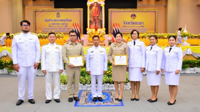 วันที่ 31 มีนาคม 2568 นายกัสมัน ยะมาแล เกษตรจังหวัดยะลา มอบหมายให้ นางวีระ สมศิริ หัวหน้ากลุ่มส่งเสริมและพัฒนาการผลิต พร้อมด้วยเจ้าหน้าที่สำนักงานเกษตรจังหวัดยะลา เข้าร่วมพิธีวันที่ระลึก พระบาทสมเด็จพระนั่งเกล้าเจ้าอยู่หัว พระมหาเจษฎาราชเจ้า และงานวันข้าราชการพลเรือน ประจำปี 2568 โดยมี นายอำนาจ ชูทอง รองผู้ว่าราชการจังหวัดยะลา เป็นประธานในพิธีเจริญพระพุทธมนต์ พิธีทำบุญตักบาตรเพื่อถวายพระราชกุศล และพิธีวางพานพุ่มดอกไม้ถวายราชสดุดี พร้อมด้วยหัวหน้าส่วนราชการ ข้าราชการ ตำรวจ ทหาร จิตอาสา และประชาชนเข้าร่วม ณ หอประชุมเฉลิมพระเกียรติ 80 พรรษา 5 ธันวาคม 2550 มหาวิทยาลัยราชภัฏยะลา อำเภอเมืองยะลา จังหวัดยะลา