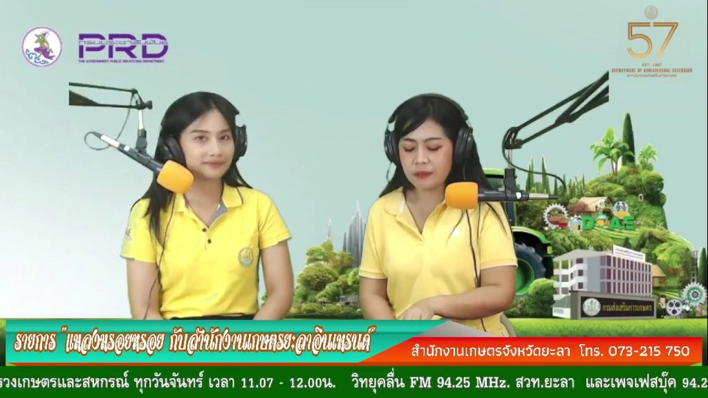 วันที่ 21 เมษายน 2568 นายกัสมัน ยะมาแล เกษตรจังหวัดยะลา มอบหมายให้นางสาวกิตติยา ศรีมณี นักวิชาการส่งเสริมการเกษตรปฏิบัติการ กลุ่มยุทธศาสตร์และสารสนเทศ พร้อมด้วยนางสาวฟาริดา ทองแก้ว นักวิชาการส่งเสริมการเกษตร สำนักงานเกษตรอำเภอกรงปินัง จัดรายการ “แหลงหรอยหรอยกับสำนักงานเกษตรยะลา อินเทรนด์” ผ่านทางสถานีวิทยุกระจายเสียงแห่งประเทศไทยจังหวัดยะลา FM 94.25 MHz. ซึ่งออกอากาศทุกวันจันทร์ เวลา 11.10 – 12.00 น. และสามารถรับชมรายการสด (Live สด) หรือรับชมย้อนหลังผ่านทาง Facebook 94.25 คลื่นมหาชน คนชายแดนใต้ โดยมีประเด็นสร้างการรับรู้เรื่องโรคเหี่ยวกล้วยหินและวิธีการใช้สารชีวภัณฑ์ BS – DOA24