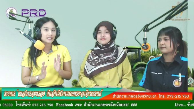 วันที่ 7 กรกฎาคม 2568 นายกัสมัน ยะมาแล เกษตรจังหวัดยะลา มอบหมายให้นางสาวกิตติยา ศรีมณี นักวิชาการส่งเสริมการเกษตรปฏิบัติการ กลุ่มยุทธศาสตร์และสารสนเทศ พร้อมด้วยนางซะฮ์รอบินตีมูฮำหมัด หลีเร็ม นักวิชาการส่งเสริมการเกษตรชำนาญการ กลุ่มอารักขาพืช และนางสาวปรางตะวัน หิรัญญะ นักศึกษาฝึกงาน วิทยาลัยการอาชีพนครยะลา จัดรายการ “แหลงหรอยหรอยกับสำนักงานเกษตรยะลา อินเทรนด์” ผ่านทางสถานีวิทยุกระจายเสียงแห่งประเทศไทยจังหวัดยะลา FM 94.25 MHz. ซึ่งออกอากาศ ทุกวันจันทร์ เวลา 11.10 – 12.00 น. และสามารถรับชมรายการสด (Liveสด) หรือรับชมย้อนหลังผ่านทาง Facebook94.25คลื่นมหาชนคนชายแดนใต้ โดยมีประเด็นสร้างการรับรู้หนอนเจาะเมล็ดทุเรียน เป็นศัตรูพืชสำคัญที่สร้างความเสียหายให้กับผลผลิตทุเรียนอย่างมาก โดยจะเข้าทำลายตั้งแต่ผลยังอ่อนไปจนถึงผลแก่ ทำให้ผลทุเรียนเน่าเสีย และมีผลกระทบต่อคุณภาพและราคาของทุเรียน กรมส่งเสริมการเกษตรเล็งเห็นความสำคัญของปัญหาหนอนเจาะเมล็ดทุเรียนที่สร้างความเสียหายต่อการผลิตทุเรียน จึงกำหนดมาตรการเฝ้าระวัง ควบคุม และป้องกันกำจัดศัตรูทุเรียน ประกอบด้วย มาตรการ 5 ด้าน คือ