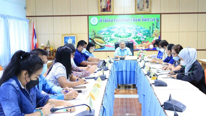 วันที่ 31 มีนาคม 2566 นายกัสมัน ยะมาแล เกษตรจังหวัดยะลา เป็นประธานในการประชุมเกษตรอำเภอประจำเดือนมีนาคม 2566 (ครั้งที่ 6/2566) โดยมีหัวหน้ากลุ่ม หัวหน้าฝ่าย และเกษตรอำเภอ 8 อำเภอ เข้าร่วมประชุมอย่างพร้อมเพรียง ณ ห้องประชุม 1 สำนักงานเกษตรจังหวัดยะลา อำเภอเมือง จังหวัดยะลา การประชุมครั้งนี้มีวัตถุประสงค์ เพื่อแจ้งข้อราชการ และติดตามความก้าวหน้าการดำเนินงานโครงการส่งเสริมการเกษตร ผลการเบิกจ่ายงบประมาณ เรื่องแจ้งของกลุ่ม/ฝ่ายและสำนักงานเกษตรเกษตรอำเภอ และที่ประชุมได้ร่วมพิจารณาแผนการปฏิบัติงานของสำนักงานเกษตรจังหวัดบูรณาการ ประจำเดือนเมษายน 2566 เพื่อเป็นเเนวทางในการดำเนินงานให้เเก่สำนักงานเกษตรอำเภอต่อไป ทั้งนี้ เกษตรจังหวัดยะลาได้มอบรางวัลให้แก่เจ้าหน้าที่สำนักงานเกษตรอำเภอที่มีผลการนำเสนอแนวทางการพัฒนาตามรูปแบบ BCG Model เด่น จากกิจกรรมเวทีแลกเปลี่ยนเรียนรู้ระดับอำเภอ ครั้งที่ 2/2566 ซึ่งจัดขึ้นเมื่อวันที่ 30 มีนาคม 2566 ที่ผ่านมา