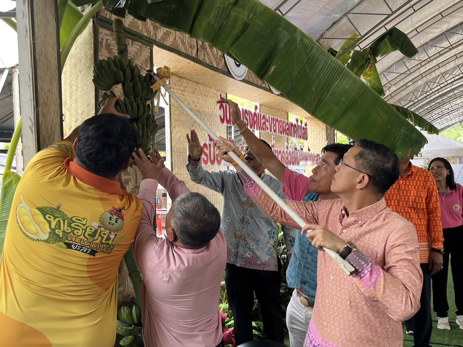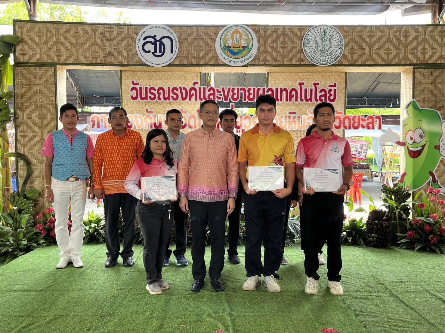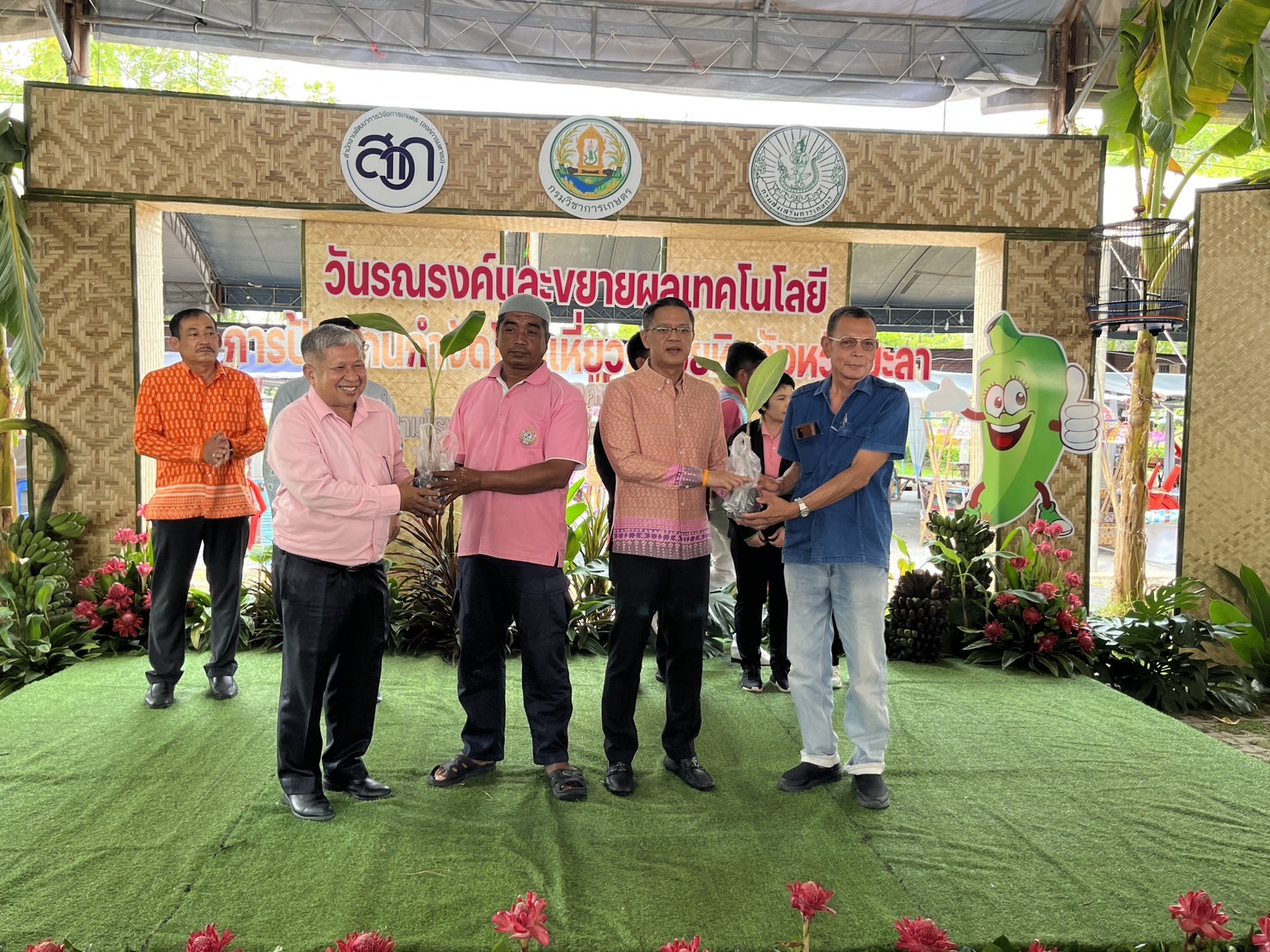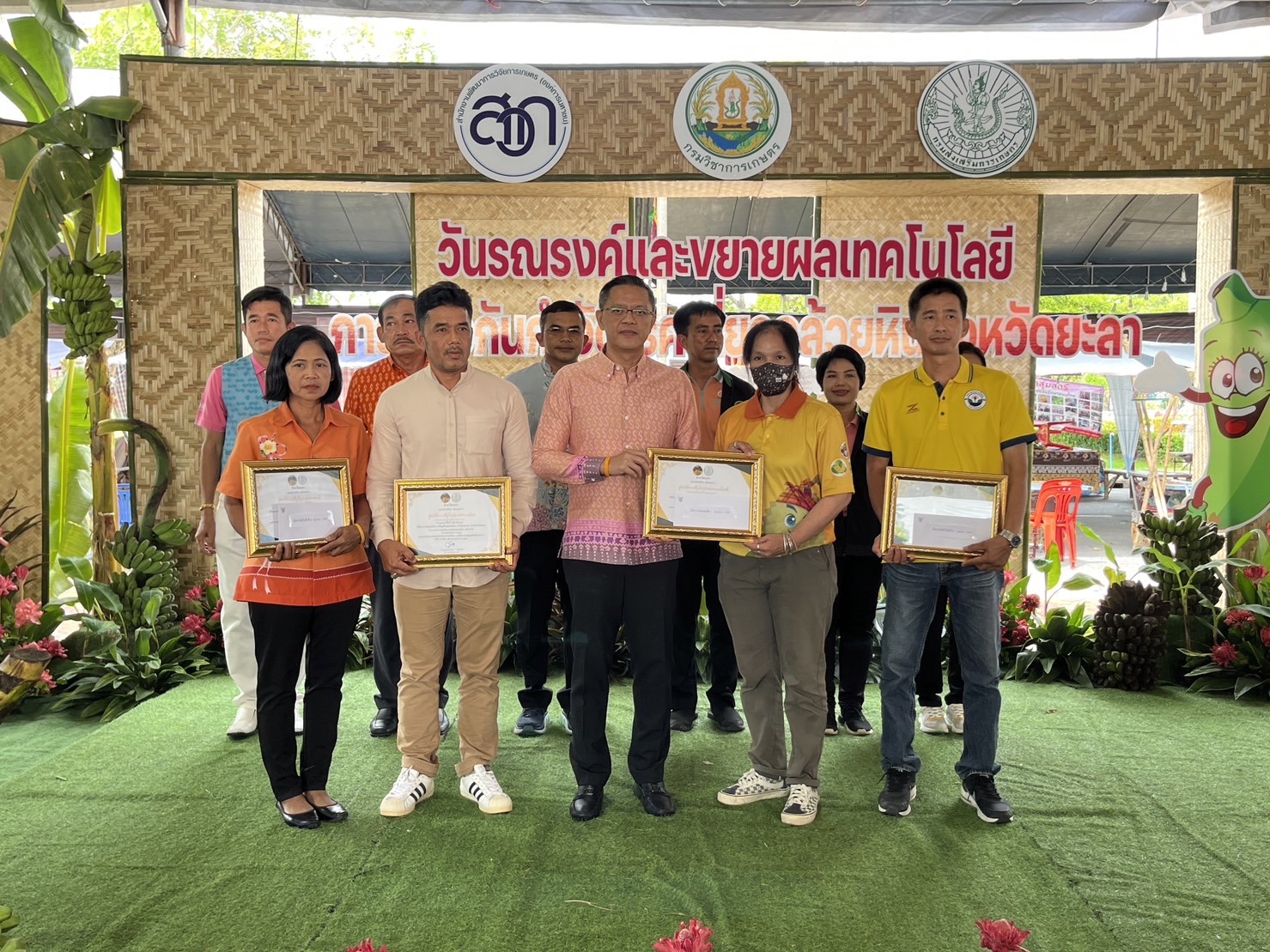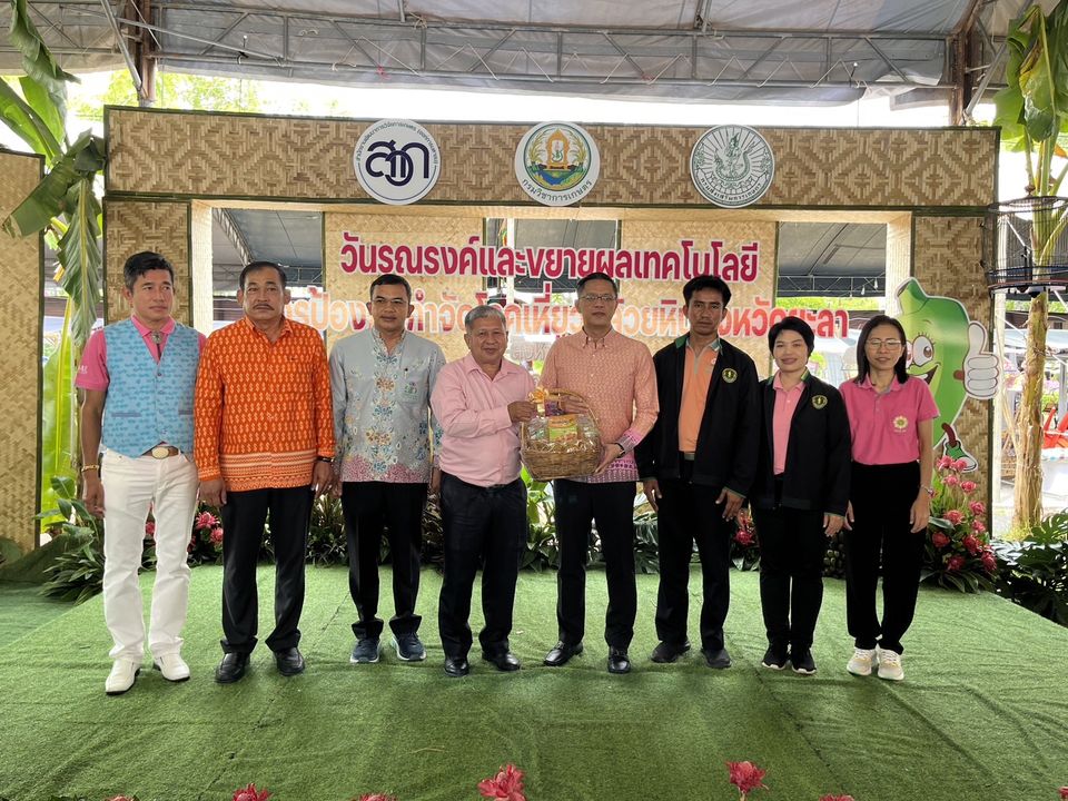 วันพฤหัสบดีที่ 17 สิงหาคม 2566 นายธีรุตม์ ศุภวิบูลย์ผล รองผู้ว่าราชการจังหวัดยะลา เป็นประธานเปิดงานวันณรงค์และขยายผลเทคโนโลยีการป้องกันกำจัดโรคเหี่ยวกล้วยหินจังหวัดยะลา ประจำปี 2566 โครงการขยายผลเทคโนโลยีการป้องกันกําจัดโรคเหี่ยวของกล้วยหิน (banana blood disease) ในพื้นที่จังหวัดยะลา พร้อมด้วยนายกัสมัน ยะมาแล เกษตรจังหวัดยะลา ผู้อำนวยการกลุ่มส่งเสริมการวินิจฉัยศัตรูพืช ผู้อำนวยการศูนย์วิจัยและพัฒนาการเกษตรยะลา ผู้อำนวยการศูนย์ส่งเสริมเทคโนโลยีการเกษตรด้านอารักขาพืช จังหวัดสงขลา และหัวหน้าส่วนราชการ โดยมีวัตถุประสงค์เพื่อสร้างการรับรู้และการมีส่วนร่วมในการป้องกันกำจัดโรคเหี่ยวในกล้วยหินให้กับเกษตรกรตระหนักและรับรู้ถึงวิธีการที่ใช้ในการควบคุมโรคพร้อมทั้งขับเคลื่อนและขยายเทคโนโลยีการป้องกันกำจัดโรคเหี่ยวกล้วยหินสู่เกษตรกรผู้ปลูกกล้วยหินจังหวัดยะลา โดยมีเจ้าหน้าที่ทางการเกษตร และเกษตรกรเข้าร่วมกิจกรรมจำนวน 250 คน ทั้งนี้ ได้เยี่ยมชมนิทรรศการความรู้เรื่องโรคเหี่ยวในกล้วยหิน การจัดการแปลงปลูกกล้วยหินปลอดโรค 6 ขั้นตอน และการควบคุมโรคกล้วยด้วยชีววิธีและการผลิตและขยายเชื้อ Bacillus subtilis (BS DOAE 24) ของหน่วยงานในสังกัดกระทรวงเกษตรและสหกรณ์ เยี่ยมชมจัดแสดงผลผลิตแปรรูปจากกล้วยหิน อาหารจากกล้วยหิน และการเสวนาหัวข้อการป้องกันกำจัดโรคเหี่ยวกล้วยหินจังหวัดยะลา พร้อมมอบหน่อพันธุ์กล้วยหินปลอดโรคแก่ตัวแทนเกษตรกร มอบใบเกียรติบัตร ศูนย์จัดการศัตรูพืชชุมชนดีเด่น ระดับจังหวัด ปี 2566 ศูนย์จัดการดินปุ๋ยชุมชนดีเด่น ระดับจังหวัด ปี 2566 และ เจ้าหน้าที่ผู้ปฏิบัติงานดีเด่น ณ บริเวณสนามโรงพิธีช้างเผือก เทศบาลนครยะลา อำเภอเมืองยะล