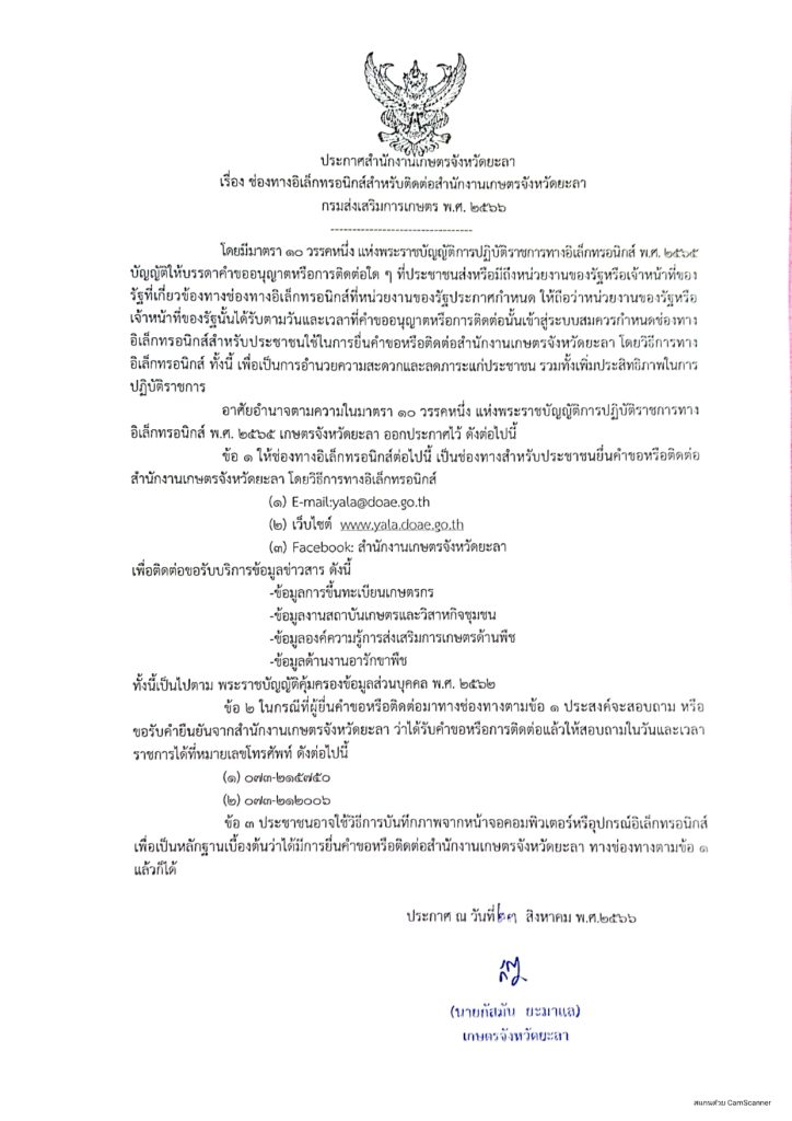 ช่องทางอิเล็กทรอนิกส์สำหรับติดต่อสำนักงานเกษตรจังหวัดยะลา 04/10/2023 admin_yala ข่าวประชาสัมพันธ์ 0 ดาวน์โหลดเอกสาร